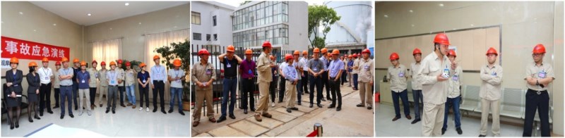 13時30分,觀摩、演練及工作人員在電廠主控室指定位置就位,公司總工程師葉元瑜宣布演練開始。本站點演練模擬:電廠與金雞變之間一條電網(wǎng)聯(lián)絡(luò)線發(fā)生短路故障,發(fā)、供電系統(tǒng)瞬間發(fā)生劇烈沖擊,造成電廠一條10kv母線失電,一臺鍋爐和一臺汽輪發(fā)電機停運,外網(wǎng)供熱受到一定程度的影響。最后在運行值長的正確指揮和各專業(yè)運行人員及金雞變調(diào)度的密切配合下,成功處置,使鍋爐和發(fā)電機重新投入運行,并及時恢復(fù)外網(wǎng)供熱。 14時,觀摩、演練及工作人員轉(zhuǎn)至生產(chǎn)區(qū)域#2脫硫塔附近的演練站點,模擬因遭受電網(wǎng)系統(tǒng)沖擊,脫硫系統(tǒng)所有動力電源失去,工作水泵無法運行,由于高溫?zé)煔膺€在流動,#2脫硫塔塔體溫度異常升高,有可能對塔內(nèi)設(shè)備及內(nèi)壁玻璃磷片造成損壞,須對塔內(nèi)進口煙氣進行應(yīng)急噴淋降溫及塔體表面噴水冷卻。經(jīng)一系列的檢查處置,最終化險為夷,#2脫硫塔重新投入運行,煙氣排放數(shù)據(jù)恢復(fù)正常。這項演練由脫硫系統(tǒng)運維公司---新世紀(jì)江南環(huán)保公司來完成。