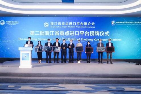 | 11月7日,中國第四屆進口博覽會暨浙江省重點進口平臺推介會在上海舉辦。會議發(fā)布新一批浙江省進口貿(mào)易促進創(chuàng)新示范區(qū)和26個浙江省重點進口平臺,寧波聯(lián)合集團進出口股份有限公司被評為浙江省重點進口平臺之一。