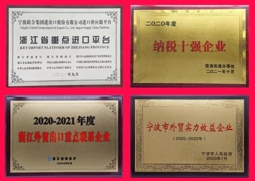 (省重點進口平臺授牌) 在獲批重點進口平臺后,公司將立足省級重點進口平臺新定位、新使命,發(fā)揮供應(yīng)鏈優(yōu)勢、專業(yè)特長,進一步踐行“數(shù)字化、國際化”的發(fā)展戰(zhàn)略,發(fā)揮重點進口平臺的窗口優(yōu)勢,加快國際化業(yè)務(wù)發(fā)展步伐,加快搭建全球采購網(wǎng)絡(luò)體系,加快融入國際市場,堅定不移地推動國際化戰(zhàn)略的落地,努力打造成為全球最具合作價值的煤炭產(chǎn)業(yè)鏈服務(wù)商。 公司經(jīng)過二十年的外貿(mào)市場深耕,出口板塊多有斬獲,“浙江省重點進口平臺”這一殊榮的取得,標志著公司經(jīng)營向進出口業(yè)務(wù)平衡發(fā)展邁進。 日前公司被評為2020年度北侖霞浦街道納稅十強企業(yè),旗下子公司寧波聯(lián)合天易通信息技術(shù)有限公司獲評2021-2022年度浙江省重點培育電商平臺企業(yè)。