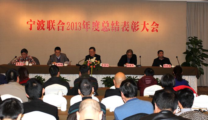 2014年1月27日上午,寧波聯(lián)合集團(tuán)股份有限公司在戚家山賓館舉行2013年度總結(jié)表彰大會。公司總部全體員工、各分公司、子公司和B類企業(yè)領(lǐng)導(dǎo)班子成員以及公司2013年度先進(jìn)單位代表和先進(jìn)個人代表參與了總結(jié)表彰大會。公司領(lǐng)導(dǎo)王維和、陳建華、戴曉峻、周兆惠、董慶慈在主席臺就座,公司黨委副書記陳建華主持了本次會議。